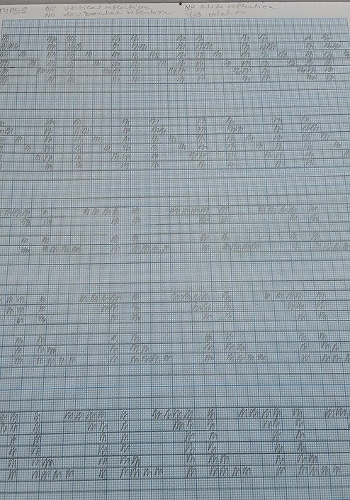 The idea behind this project is to design beaded necklace wraps for each one of the seven frieze patterns. Symmetrical object have predictability to them, and thus can induce a sense of safety, or calm, in the wearer. I am interested in what sort of symmetry an individual is drawn to, or whether an individual is happy to, or even prefers to reject symmetry altogether, and chooses to abide in the groundlessness of asymmetry . For instance, could you wear a pair of socks, that differed in colour only at the toe?